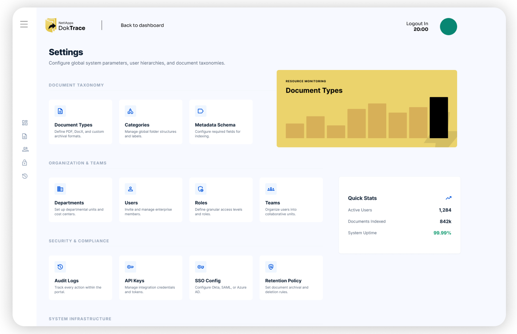 Handles growing document volumes with ease. Add users, departments, and document types without starting over.